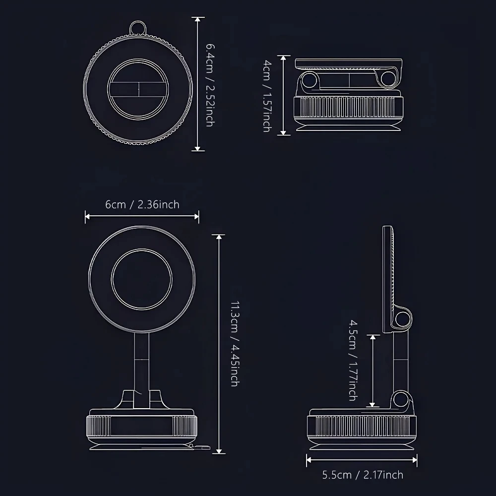 K007 Strong Magnetic Car Phone Holder Foldable Design 360° Adjustable Vacuum Mount for Car/Desk/Bathroom/Universal Use