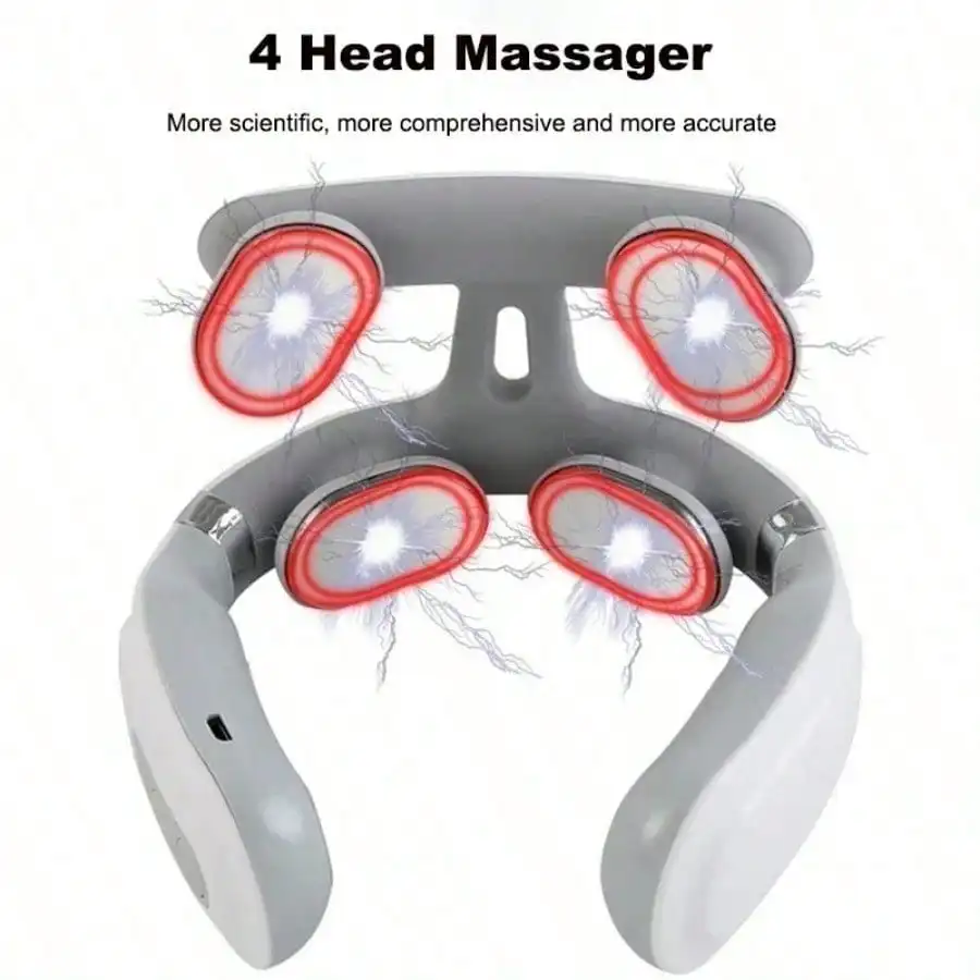 Smart Neck Massager: The Future of Personalized ReliefIntroduction: Reclaim Your ComfortIn today’s fast-paced world, neck tension is an inevitable consequence of long hours spent at a desk or looking down at a screen. The Smart Neck Massager is not just a gadget; it is your personal, portable sanctuary designed to melt away stress and restore vitality to your cervical spine. Experience the next generation of pain relief, engineered for modern life.Key Features & BenefitsThis device utilizes advanced technology to deliver a deep, synchronized massage experience, targeting the exact points of tension.Benefit to YouTechnical SpecificationFeatureComprehensive Coverage: Simultaneously targets four key areas for a full, therapeutic massage that mimics human hands.4-Head Electrode Design (as per image)Synchronized MassageDeep Tissue Relief: Penetrates beyond the surface to stimulate muscles, improve blood circulation, and alleviate chronic pain.Electronic Pulse Massage (TENS/EMS)Intelligent TechnologyRelief Anywhere, Anytime: Use it at the office, during your commute, or while relaxing at home. It’s discreet and rechargeable.Lightweight, Ergonomic, and Wireless DesignUltimate PortabilityCordless Freedom: Enjoy multiple massage sessions on a single charge without the hassle of wires.Internal Rechargeable Battery (DC Power Source)Built-in PowerPeace of Mind: Meets European safety standards, ensuring a safe and reliable user experience.CE CertifiedSafety CertifiedWhy Choose Our Smart Neck Massager?Ergonomic Comfort: The flexible, U-shaped design ensures a perfect fit for all neck sizes, maximizing contact and effectiveness.•Targeted Pain Management: Ideal for relieving stiffness, soreness, and fatigue caused by poor posture or stress.•Simple Operation: Easy-to-use controls allow you to customize the intensity and mode of your massage with a single touch.•Modern Aesthetic: Its sleek, minimalist design in a premium finish makes it a stylish accessory, not just a medical device.•Specifications SummaryProduct Type: Electric Pulse Neck Massager•Massage Heads: 4 Synchronized Electrodes•Power Source: DC (Internal Rechargeable Battery)•Certification: CE•Material: High-Quality, Durable ABS/PC Composite•Function: Relaxation, Pain Relief, Muscle Stimulation•Invest in your well-being. Transform your daily routine from one of tension to one of tranquility with the Smart Neck Massager.