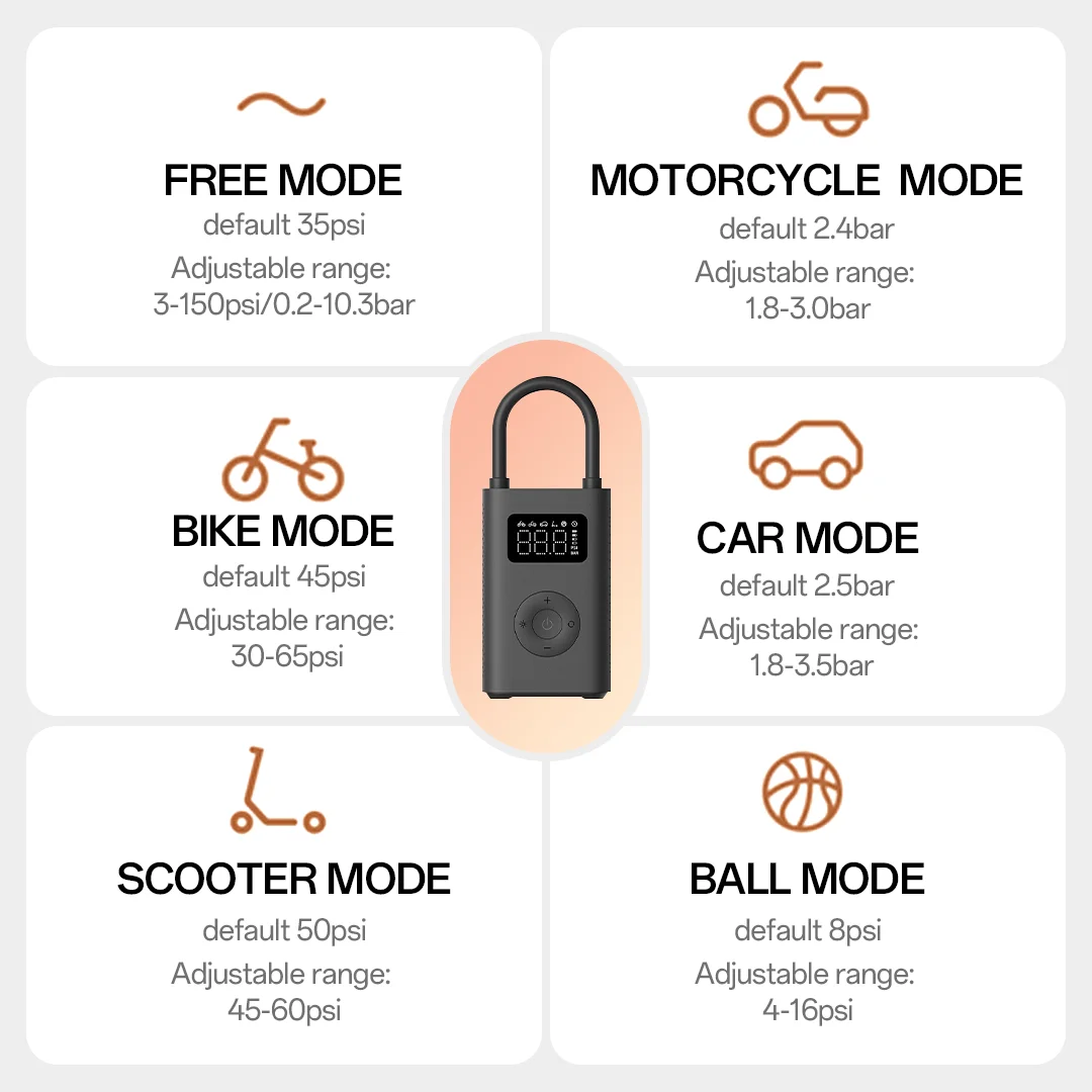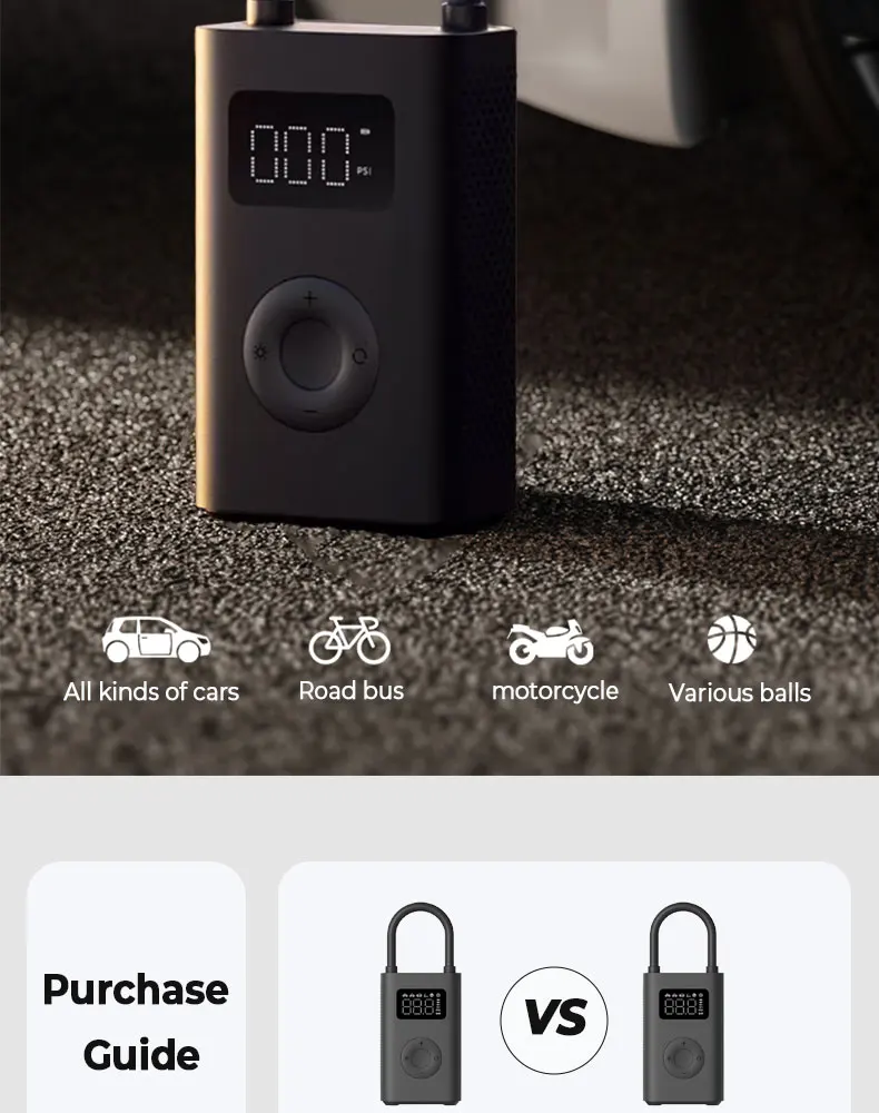 Xiaomi Mijia Portable Air Pump 2/2D/2Pro Multifunctional–For Car Bike Motorcycle Ball Fast & Accurate LED Display Type-C Charg