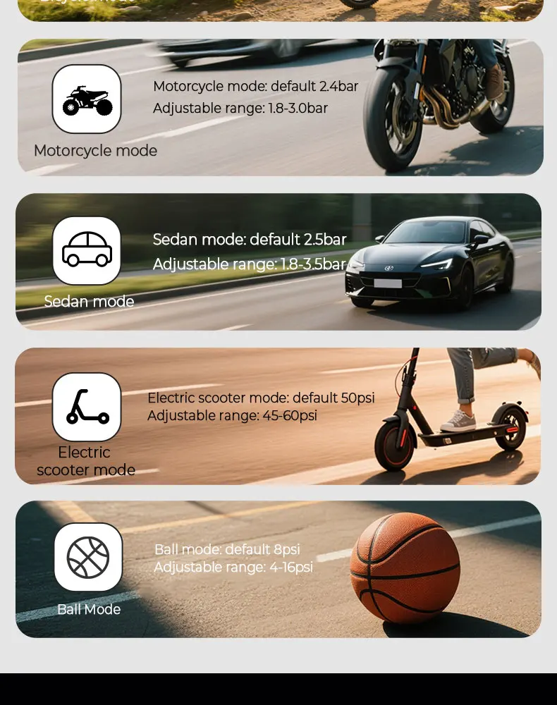 ⚠ تحقق من التوافق – تأكد من أن المضخة تلبي متطلبات ضغط سيارتك/دراجتك.